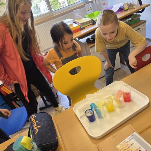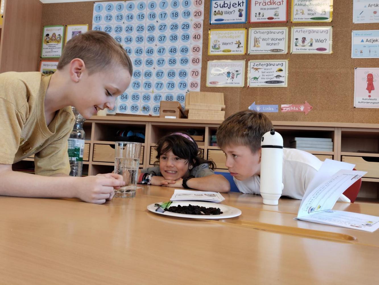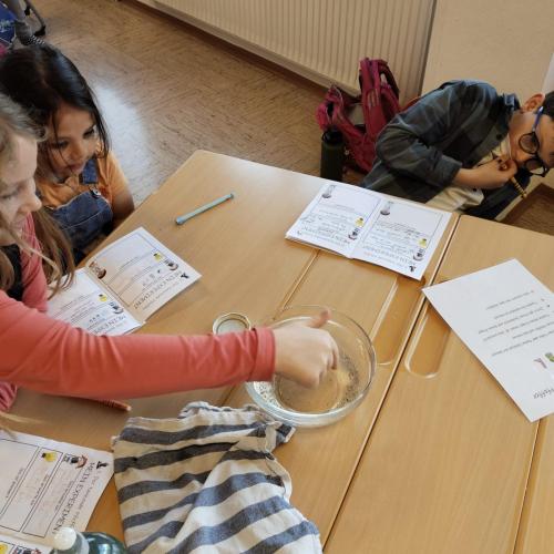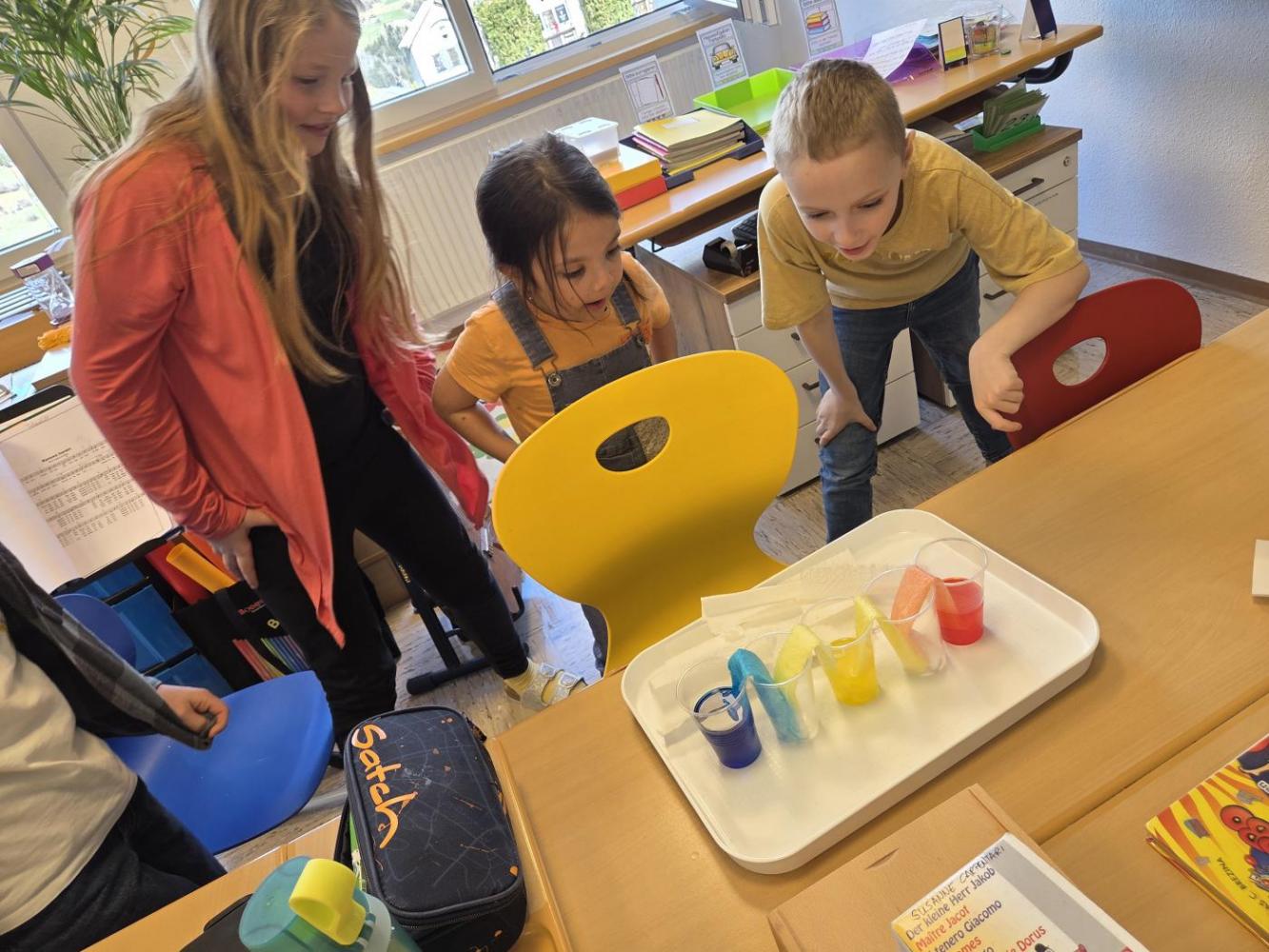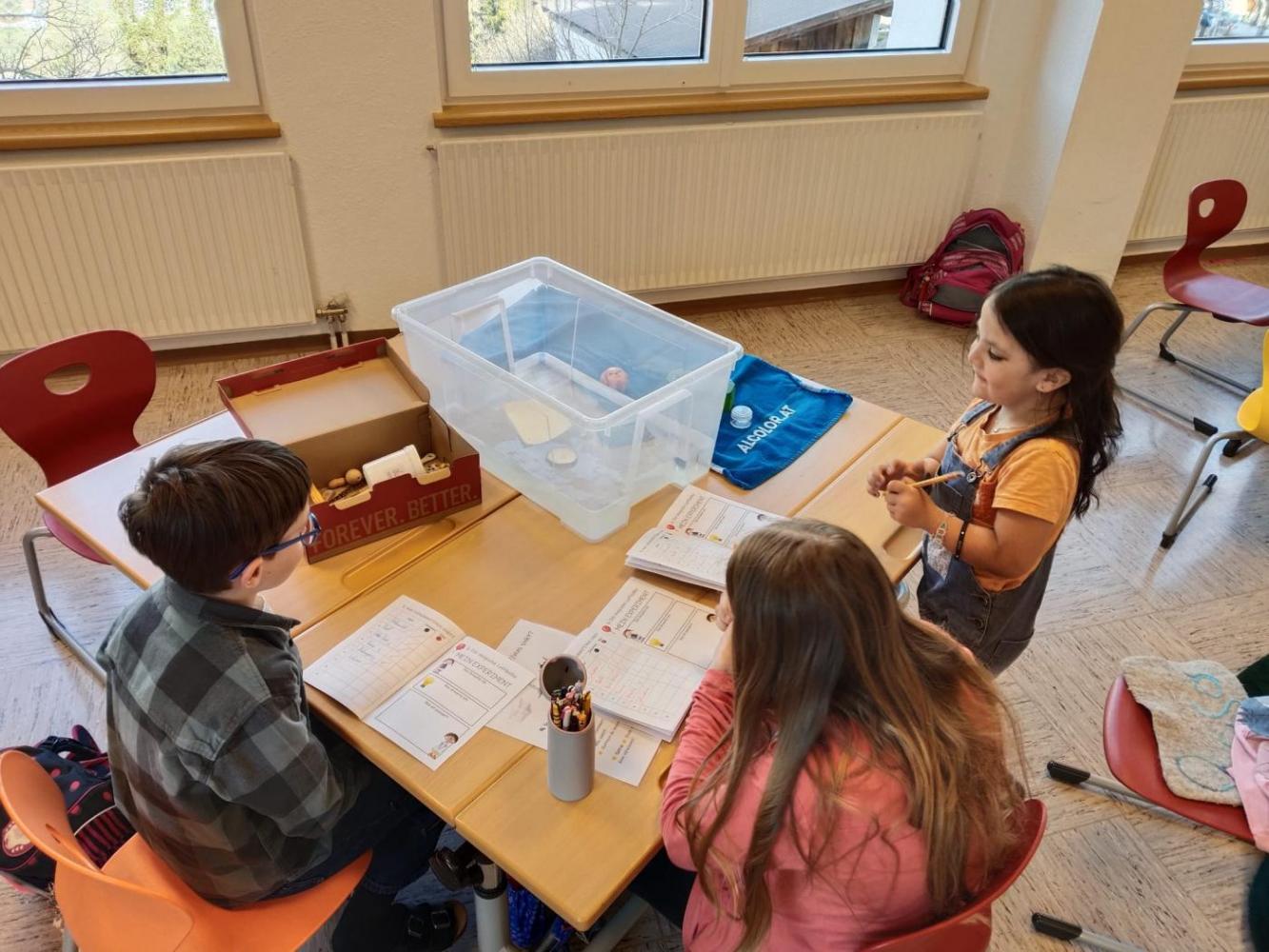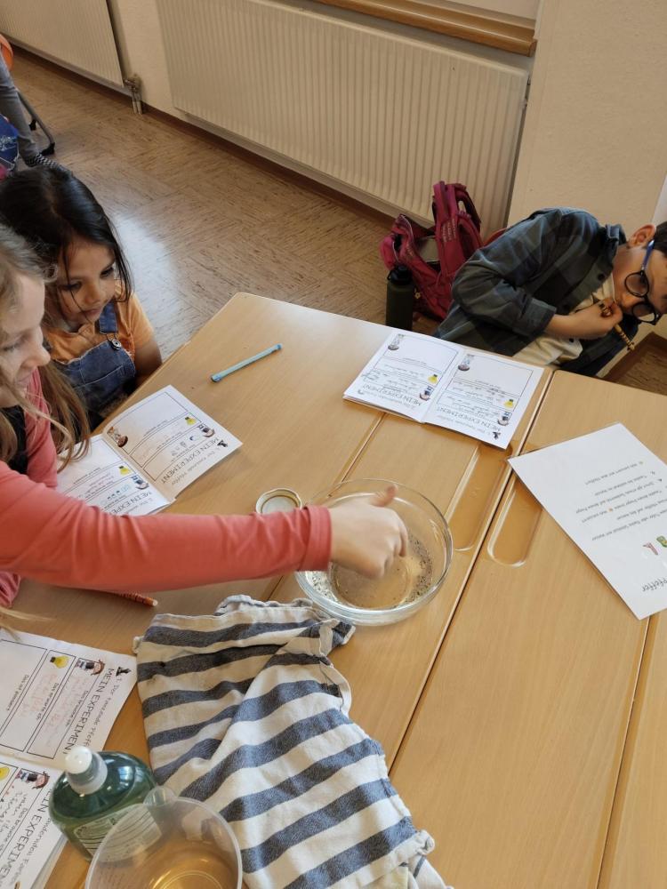 Damit die Kinder die Phänomene in der Natur besser verstehen, wird mit Lehrerin Eva experimentiert.