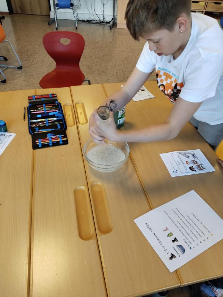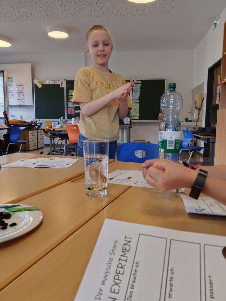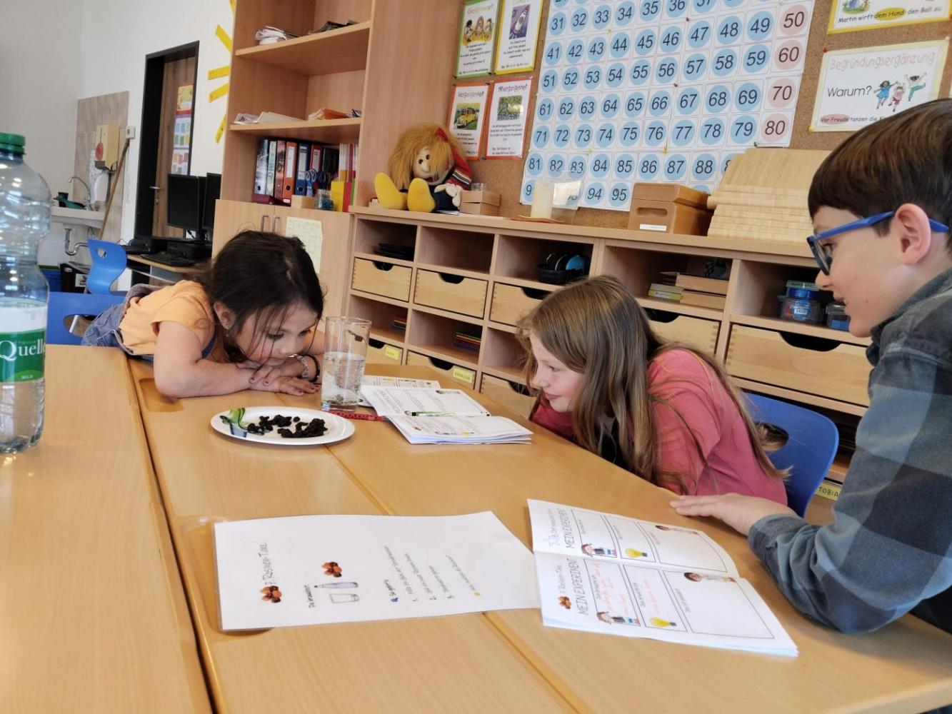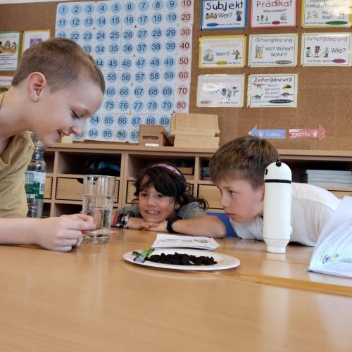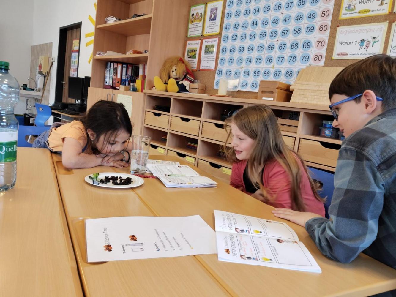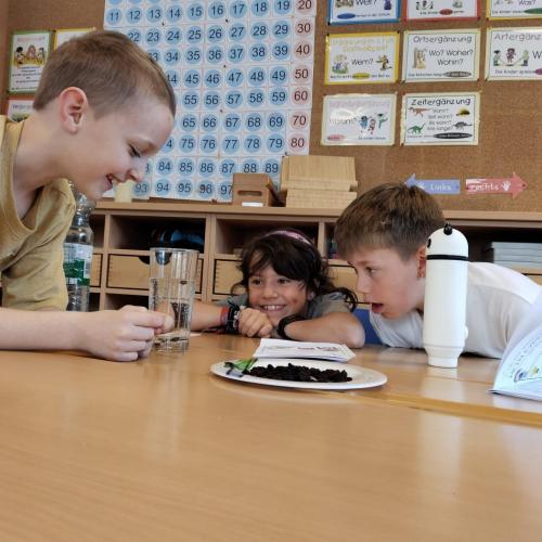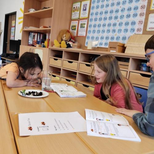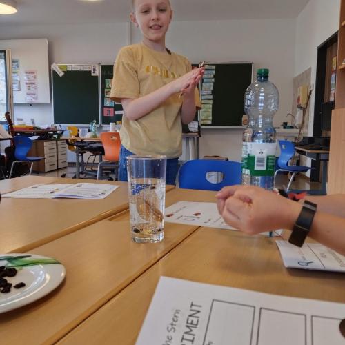 Damit die Kinder die Phänomene in der Natur besser verstehen, wird mit Lehrerin Eva experimentiert.