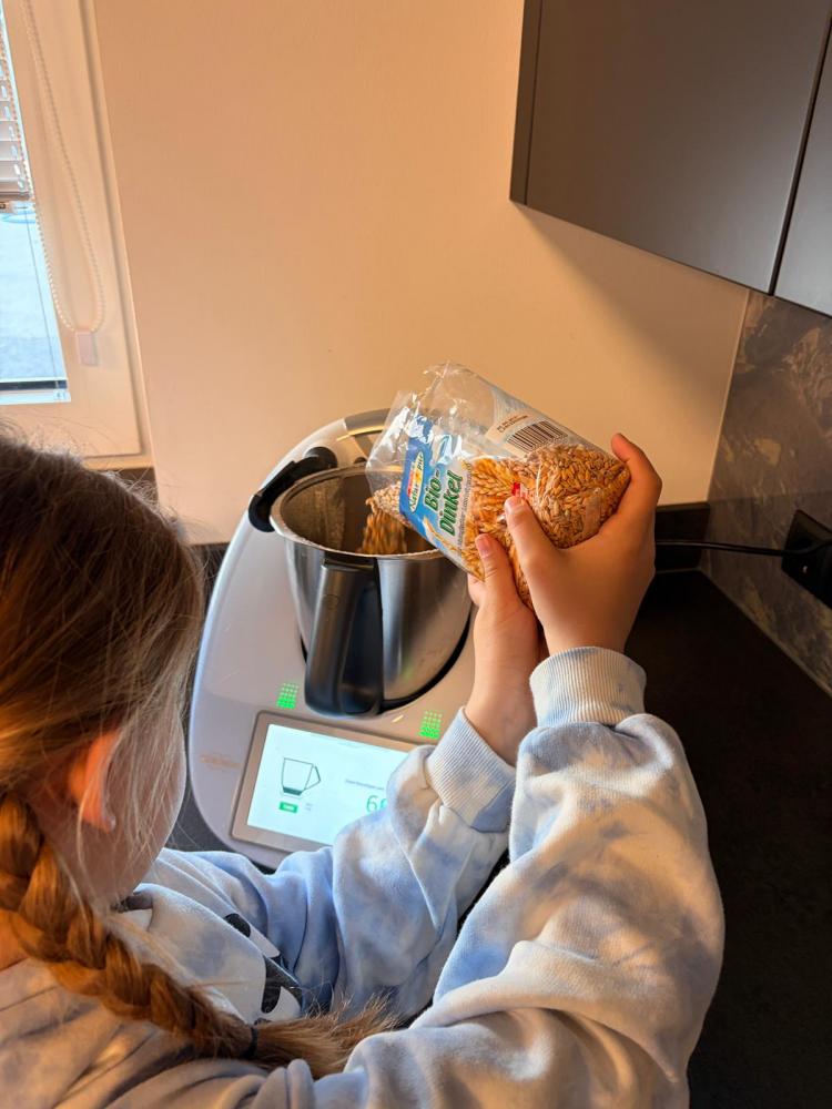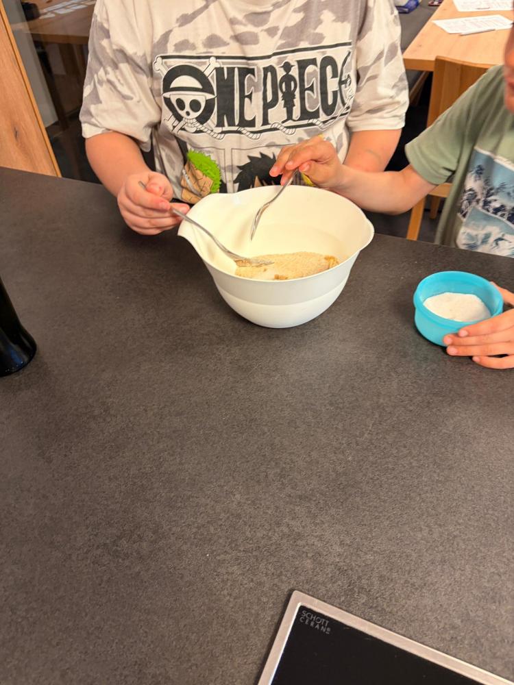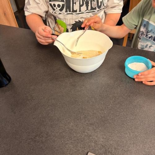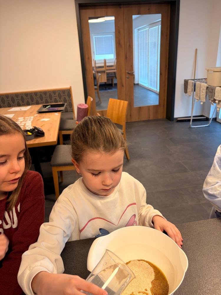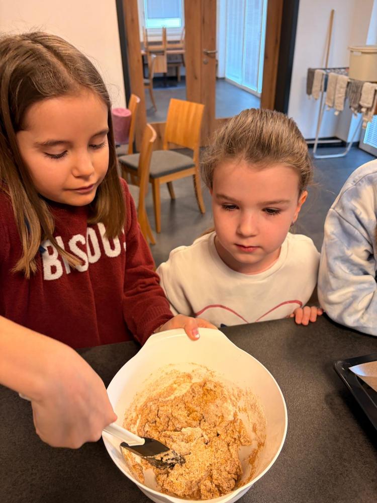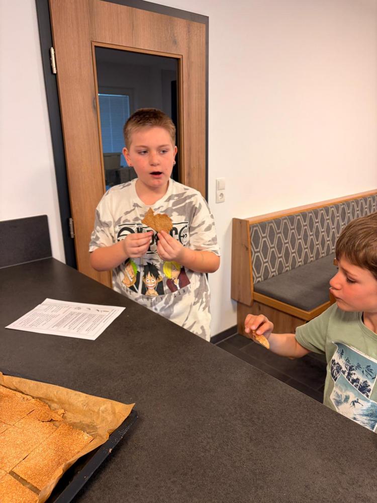 Im Sinne unseres Schulentwicklungsthemas „Gesundheit“ wird ein gesundes Knäckebrot hergestellt. Dafür besuchen die Kinder die Schulküche mit Lehrerin Susanne.