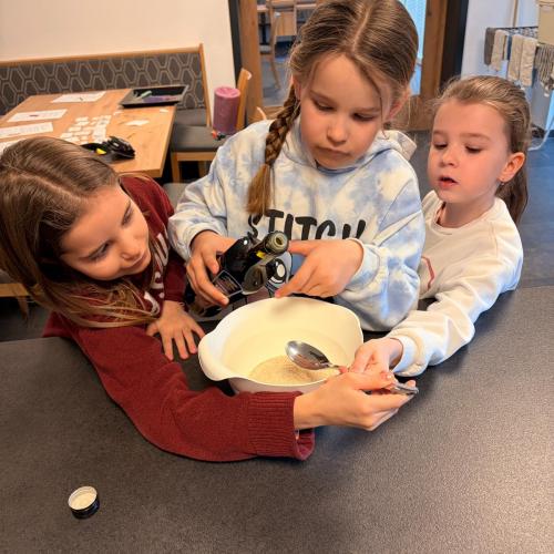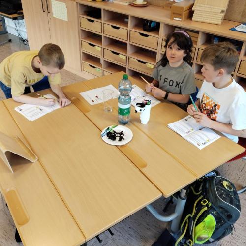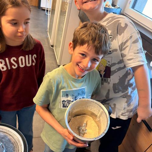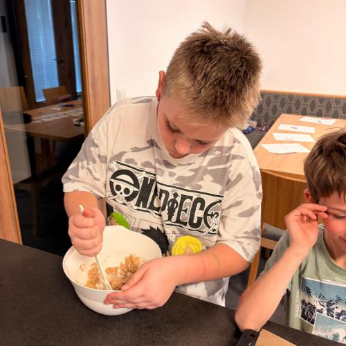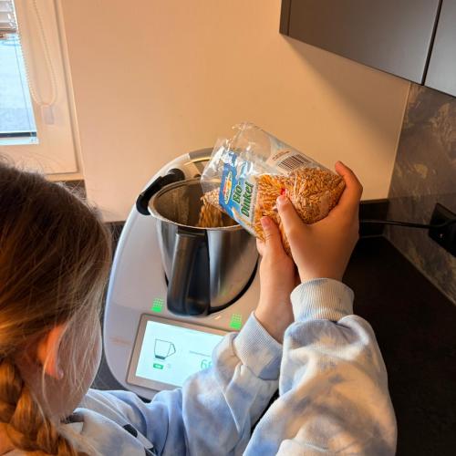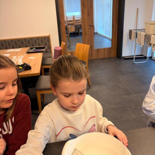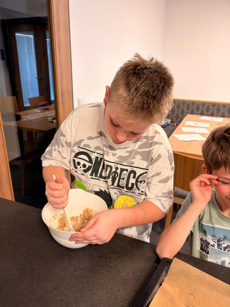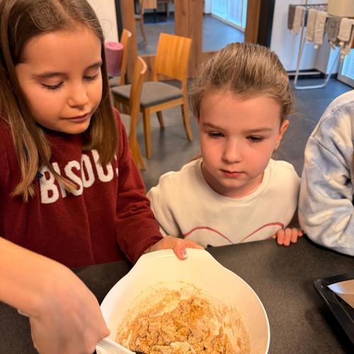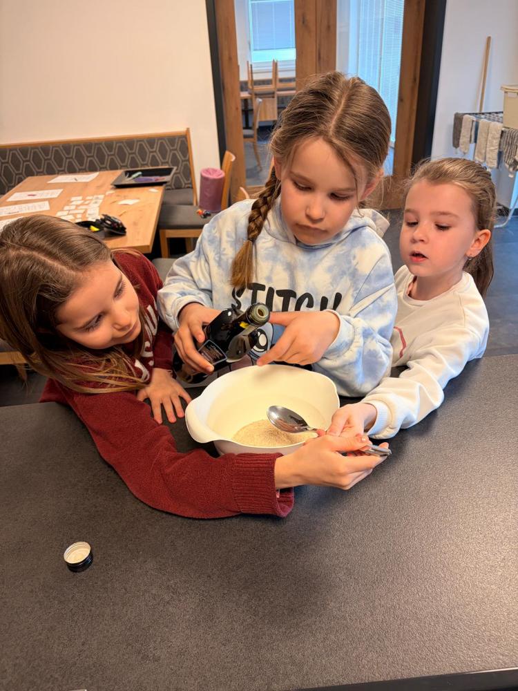 Im Sinne unseres Schulentwicklungsthemas „Gesundheit“ wird ein gesundes Knäckebrot hergestellt. Dafür besuchen die Kinder die Schulküche mit Lehrerin Susanne.