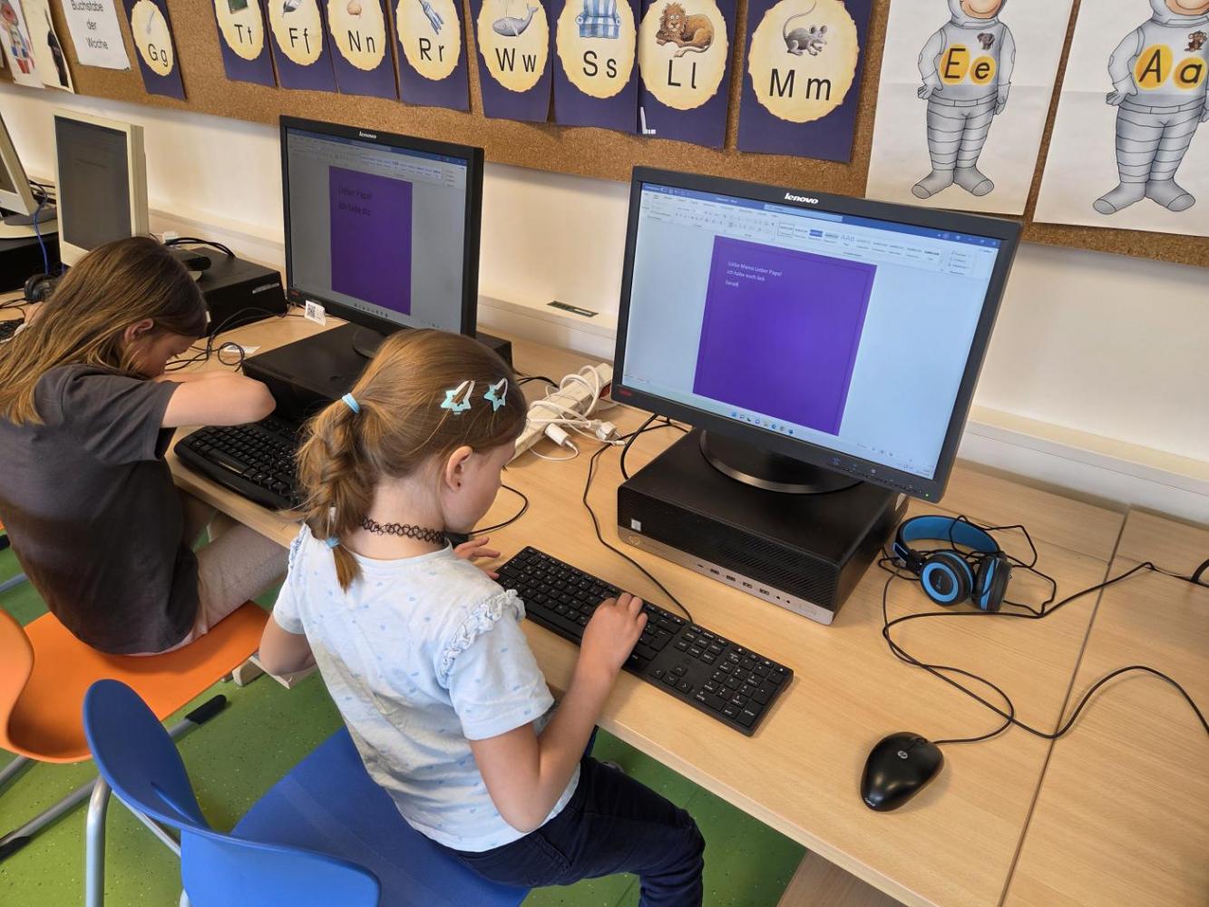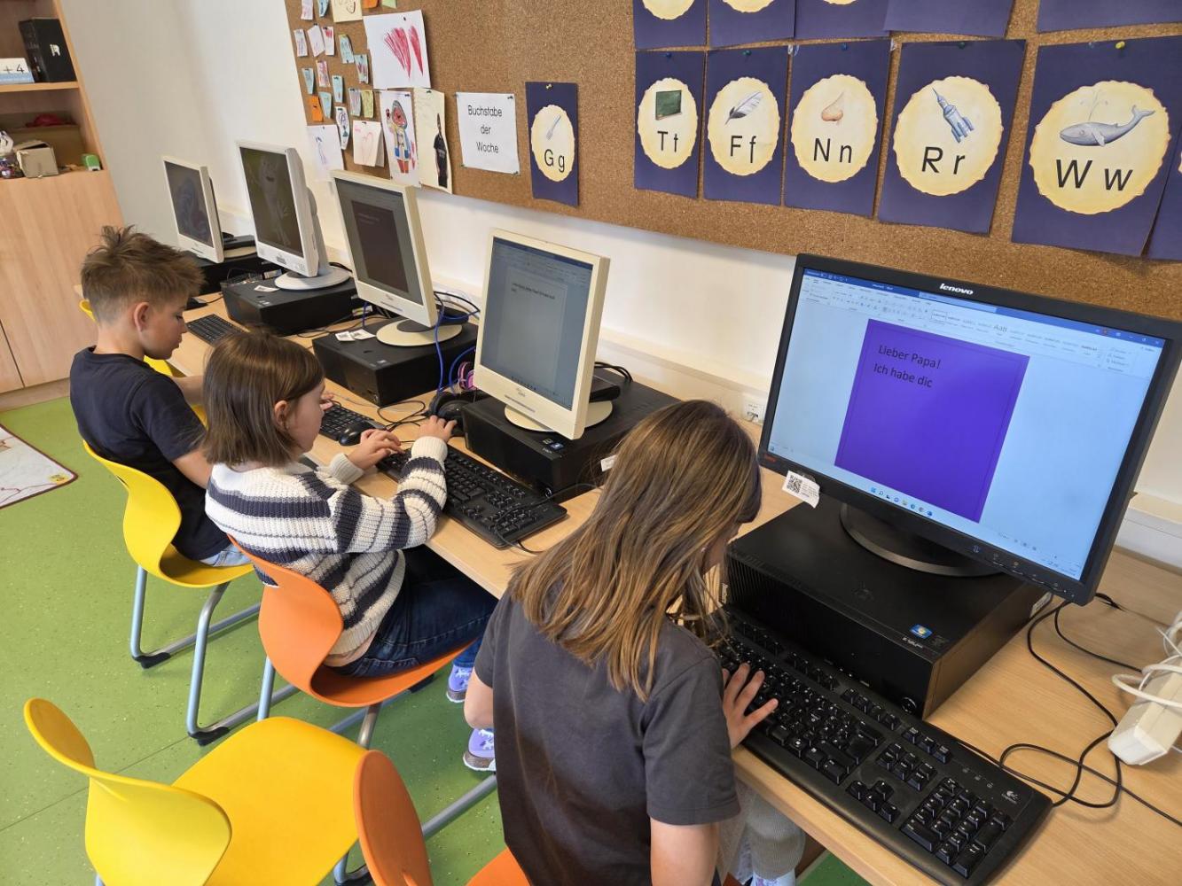 Die Vorteile und Möglichkeiten des Programms „Word“ lernen die Kinder bei Lehrer Egon kennen.
