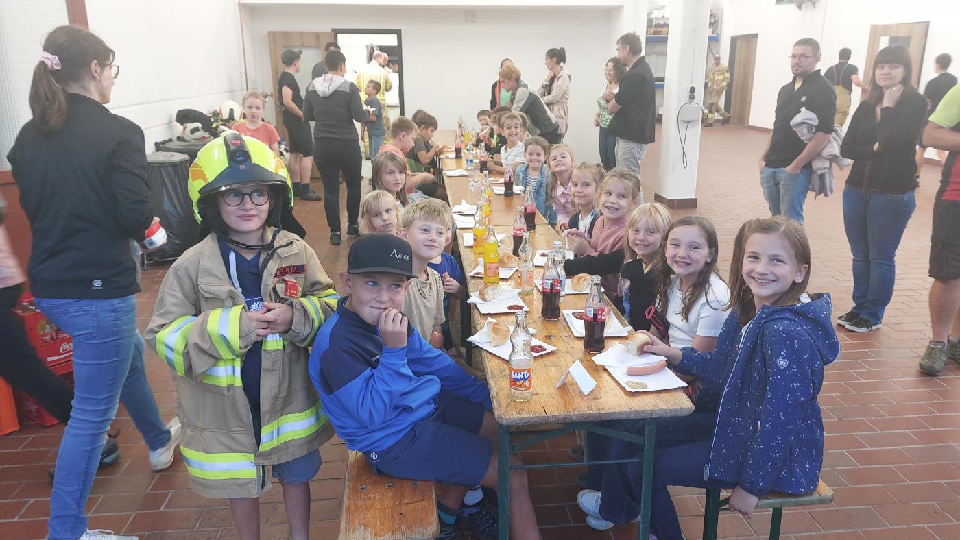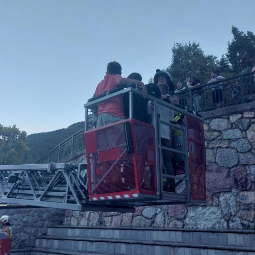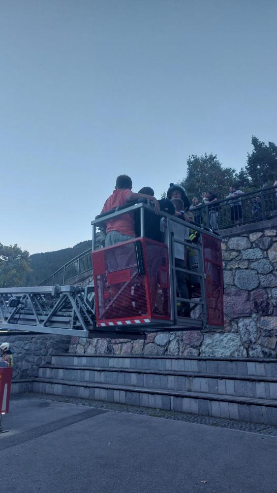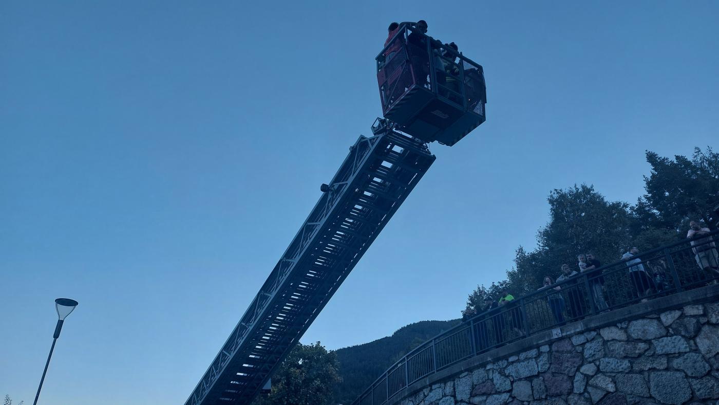 Nach dem erfolgreichen Abschluss der Übung gab es als Dankeschön noch ein besonderes Highlight: eine Fahrt mit der Drehleiter, sowie eine leckere Jause für alle Beteiligten.
