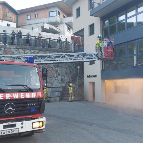 Unter der Leitung der Feuerwehr Tobadill wurde ein „Brandfall“ im Gemeinde- und Schulgebäude simuliert. Alle Kinder mussten „gerettet“ werden – zwei davon spielten ohnmächtige Opfer, die vom Atemschutztrupp sicher ins Freie gebracht wurden. Gott sei Dank konnten alle schnell in Sicherheit gebracht werden.