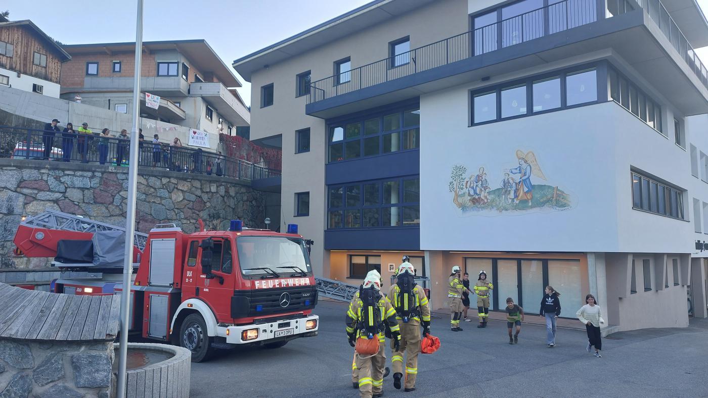 Heute, 19.09.2025, fand an der Volksschule Tobadill eine spannende Feuerwehrübung statt. Schon beim Eintreffen der Feuerwehr war die Aufregung bei den Kindern groß – schließlich stand eine realitätsnahe Übung auf dem Programm.