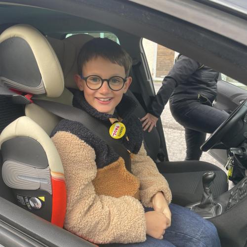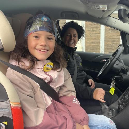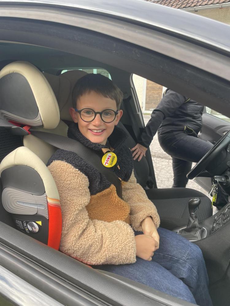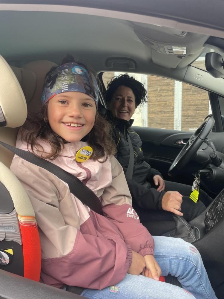 Die Kinder sahen und spürten, dass selbst eine Notbremsung das Auto nicht sofort zum Stillstand bringt. Dies ist eine wichtige Erkenntnis bei der selbständigen Bewältigung des Schulwegs. Höhepunkt dieser aufregenden Aktion ist unumstritten das Mitfahren und Auslösen einer Vollbremsung im Auto für jedes einzelne Kind!