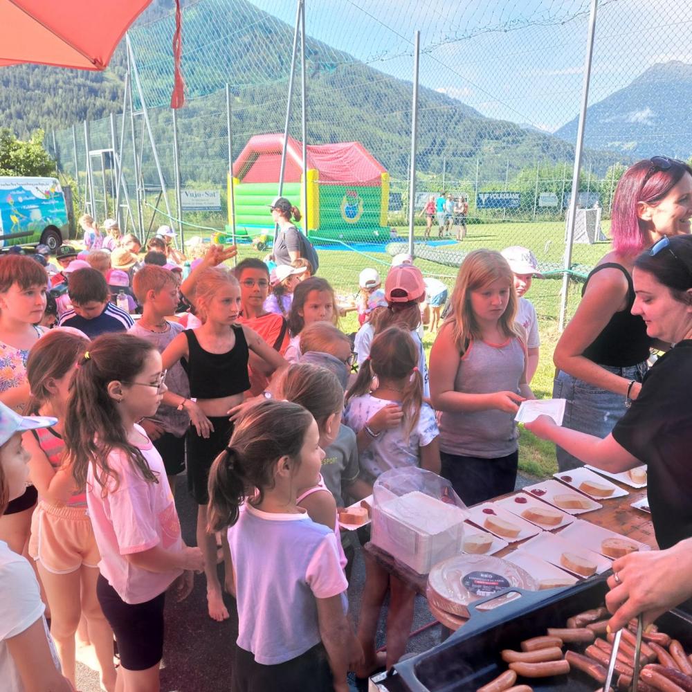 An die 200 Kinder, darunter auch die Volksschul- und Kindergartenkinder aus Tobadill, nahmen beim großen Abschlussfest von Hopsi Hopper am Sportplatz in Stanz teil.
