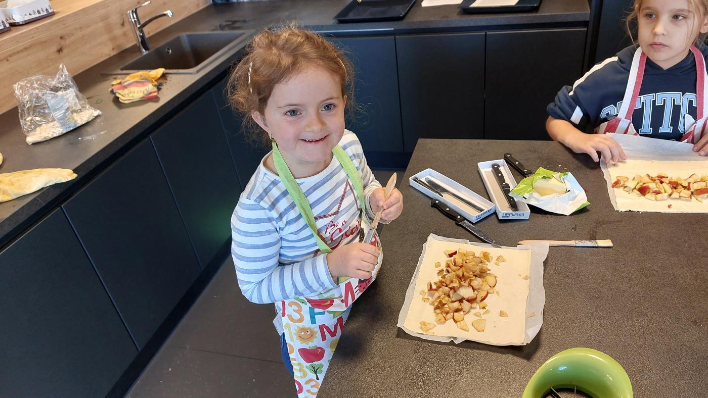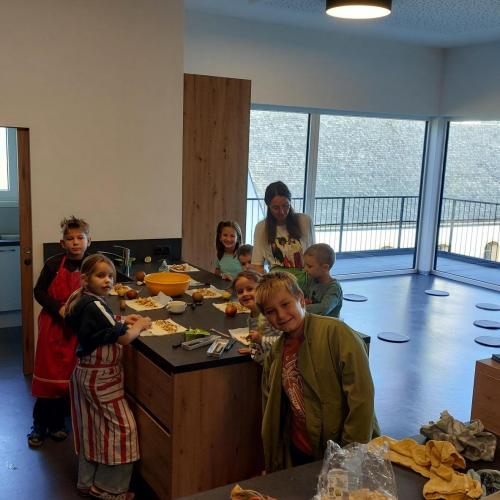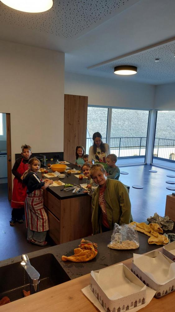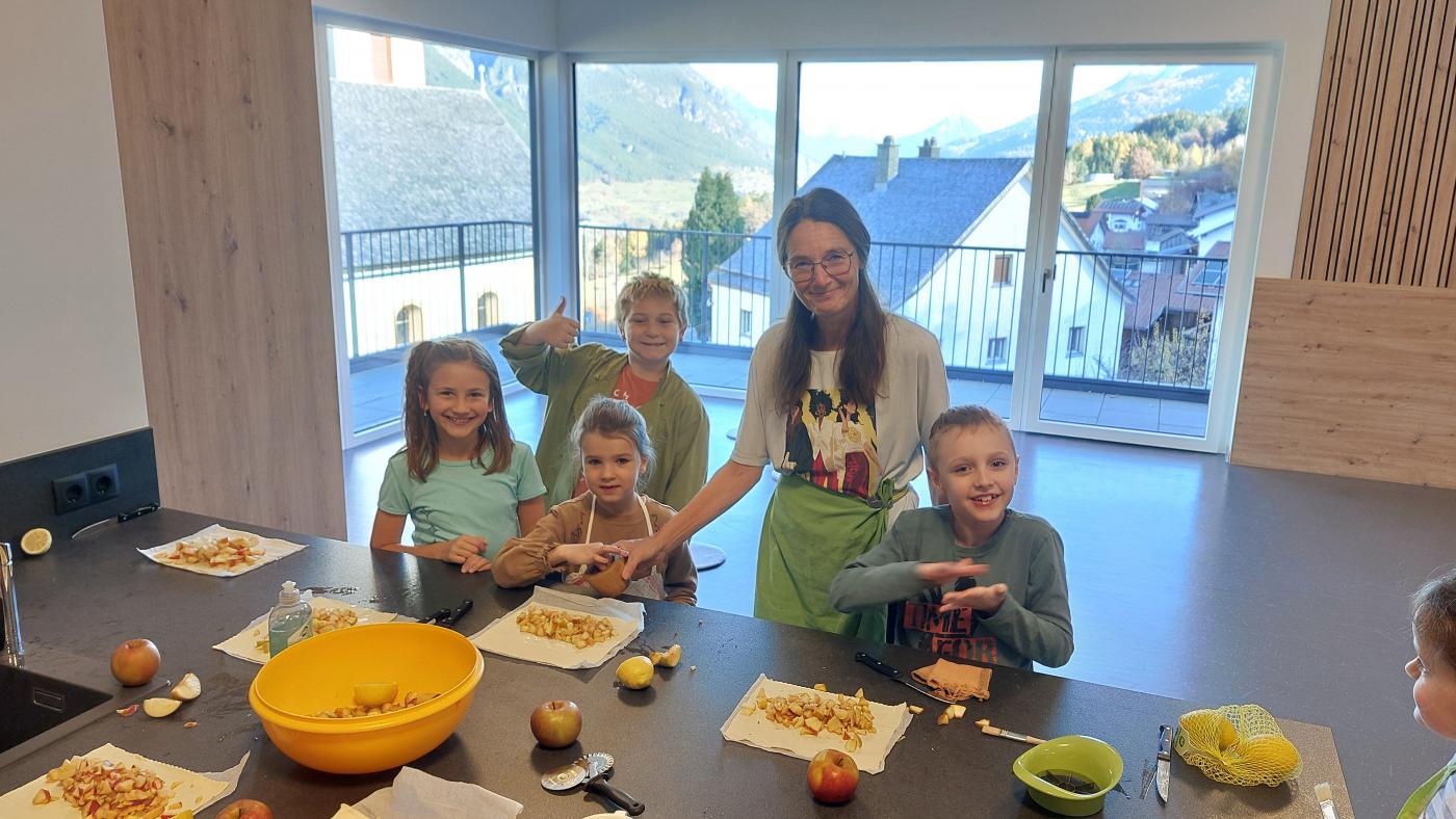In der Küche wurde bei Lehrerin Petra fleißig gebacken – der selbstgemachte Apfelstrudel verbreitete einen herrlich süßen Duft im ganzen Gemeindehaus.