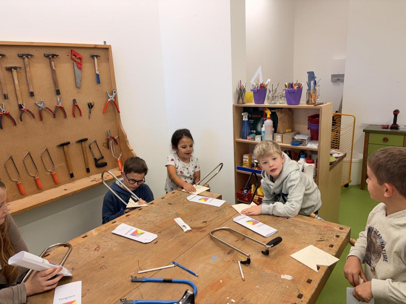 Bei Lehrerin Susanne entstanden tolle Laubsägearbeiten.