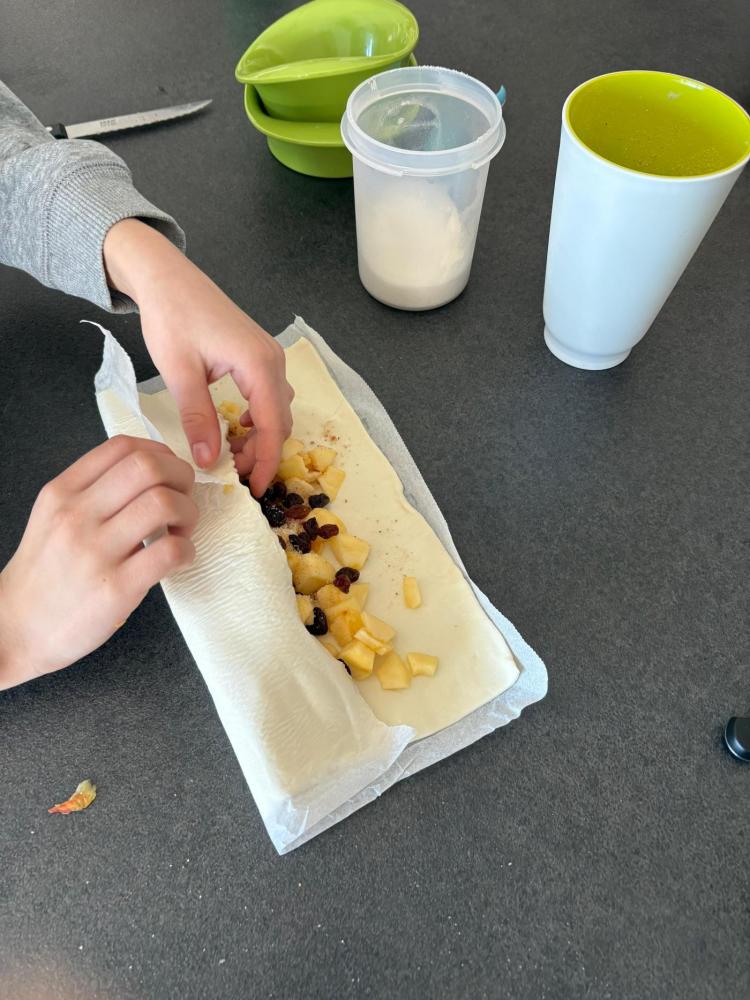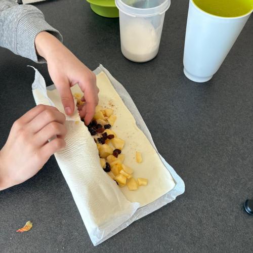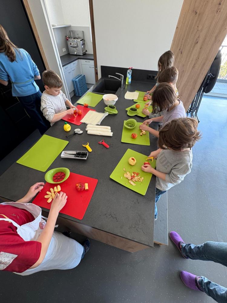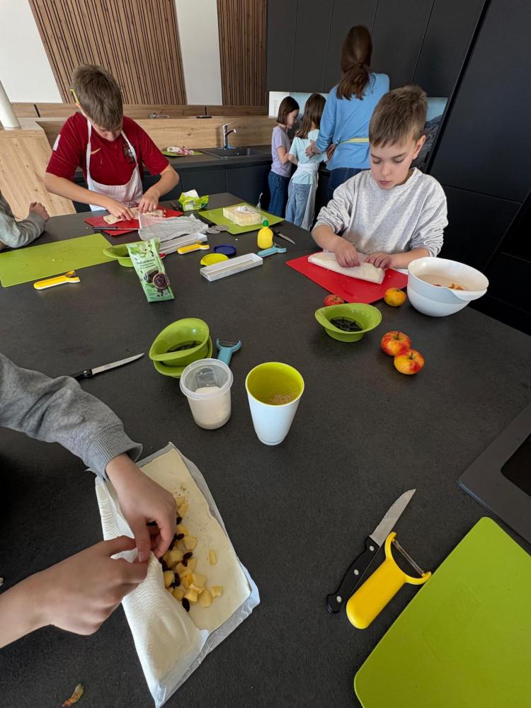 Sie backten einen Apfelstrudel, sägten ein Tangram mit der Laubsäge aus, erlernten Zaubertricks und programmierten Bauwerke von Lego Spike.