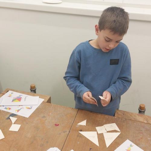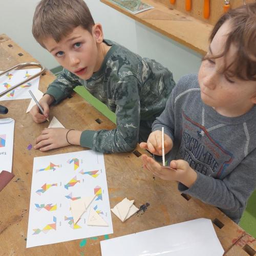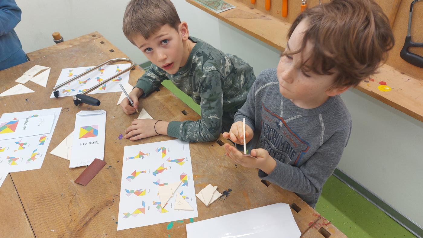 Ihr werktechnisches Geschick konnten die Schülerinnen und Schüler bei den Laubsägearbeiten unter Anleitung von Lehrerin Susanne unter Beweis stellen.