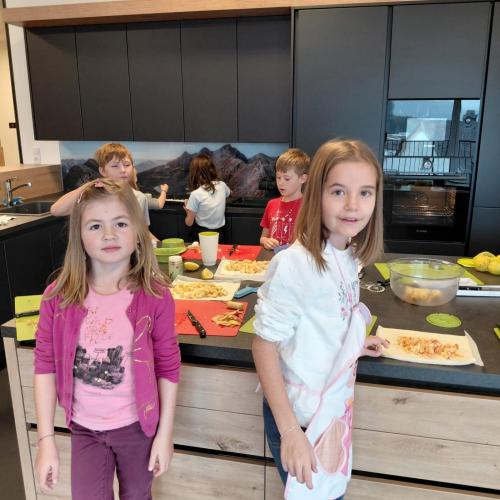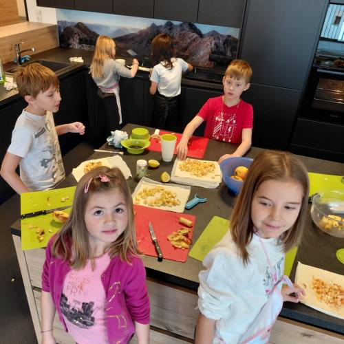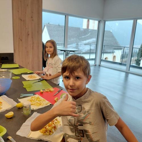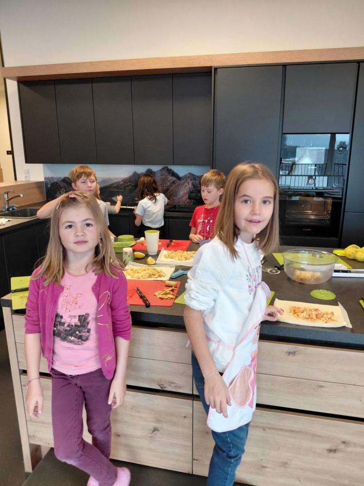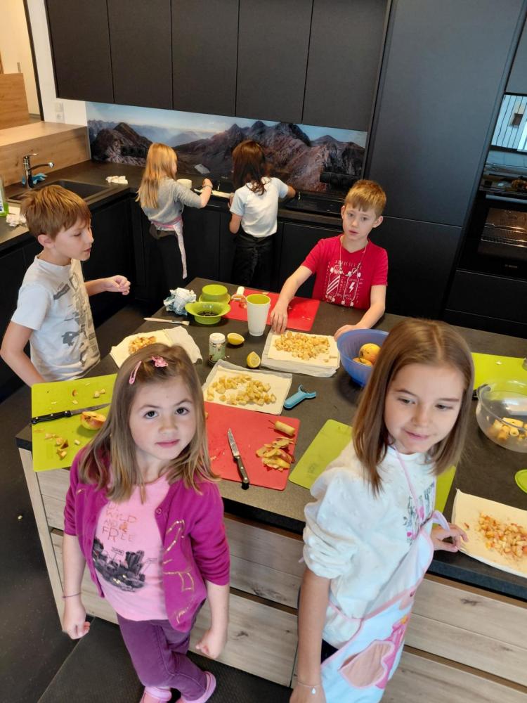 Kulinarisch ging es bei Lehrerin Petra zu: Gemeinsam bereiteten die Kinder einen köstlichen Apfelstrudel zu, dessen herrlicher Duft schon bald das gesamte Schulhaus erfüllte.