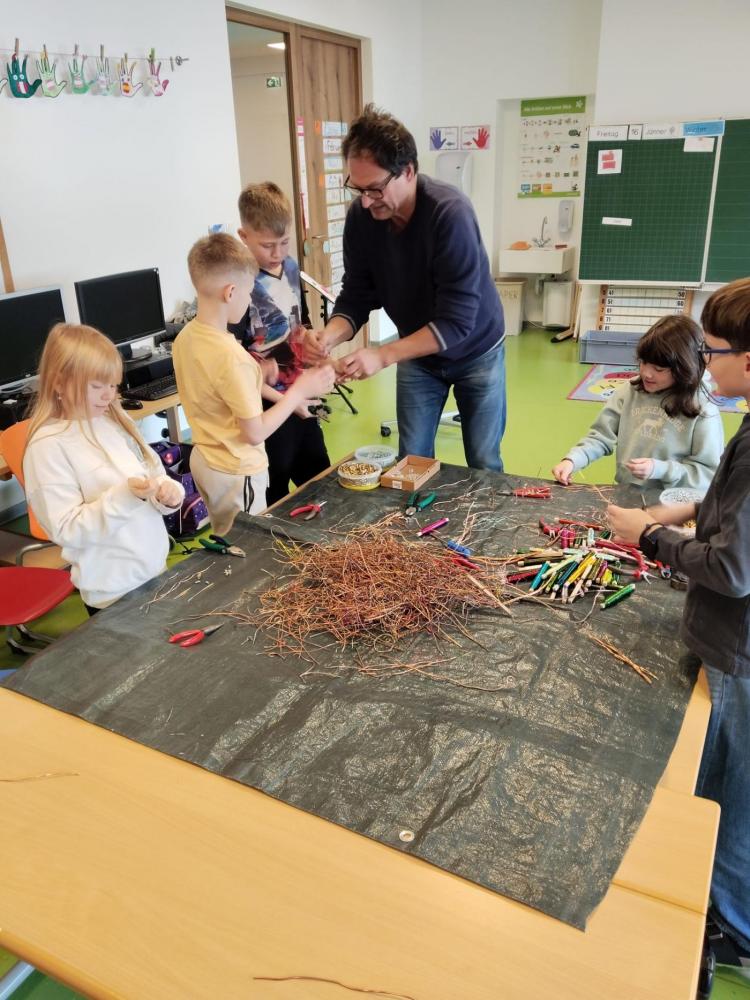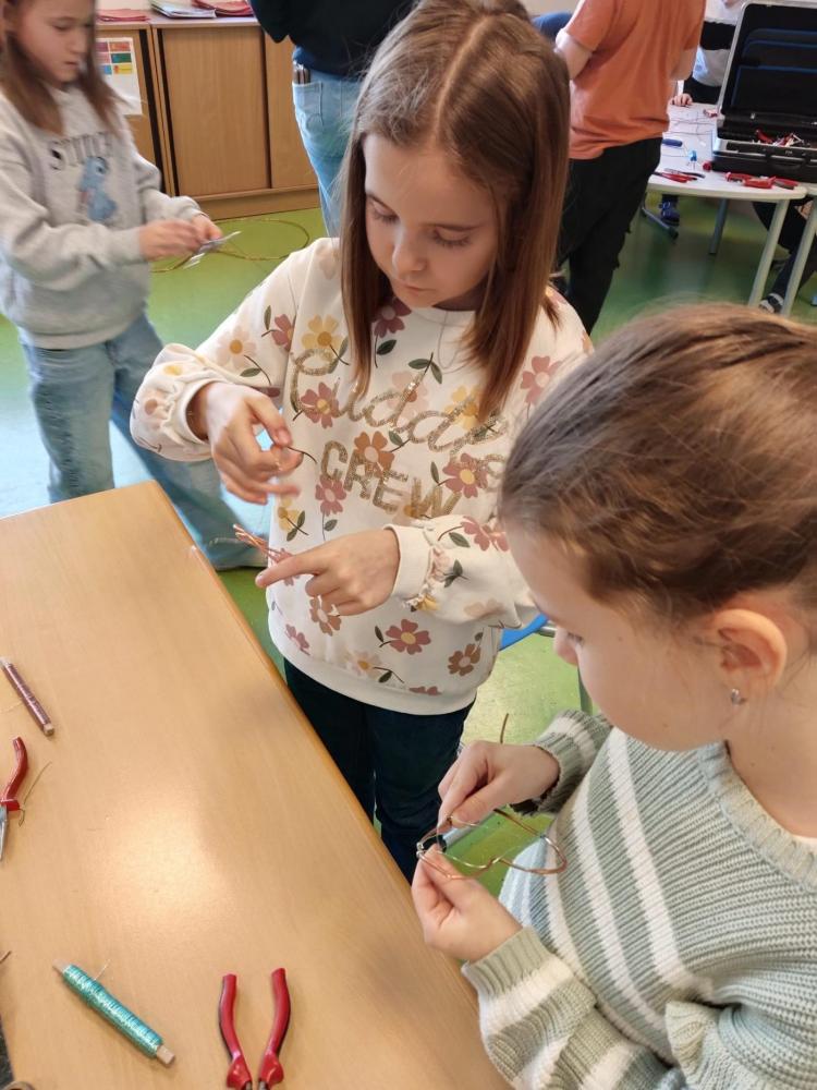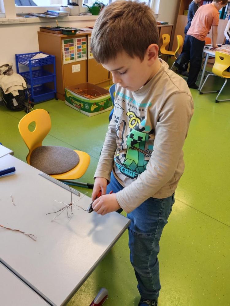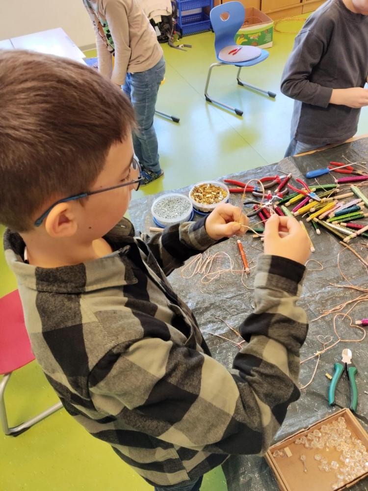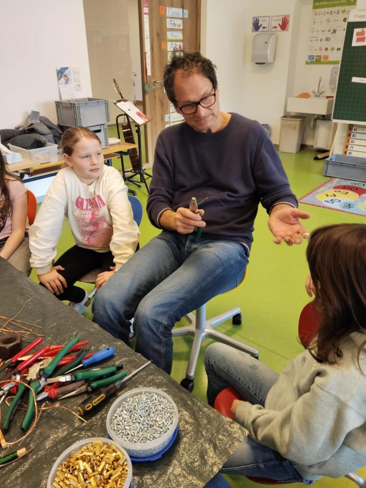 Im Rahmen des Tiroler Kulturservice war Herr Matthias Pflug zu Besuch an unserer Volksschule. In einem spannenden Workshop zum Thema „Metall kreativ" durften die Kinder selbst experimentieren und ihrer Fantasie freien Lauf lassen. Sie lernten verschiedene Metalle kennen, erfuhren Wissenswertes über deren Eigenschaften und arbeiteten mit passendem Werkzeug. Mit viel Begeisterung entstanden dabei kunstvolle Herzen aus Kupferdraht sowie kleine Krebse. Der Workshop bereitete den Kindern große Freude und bot einen besonderen Einblick in kreatives Arbeiten mit Metall.