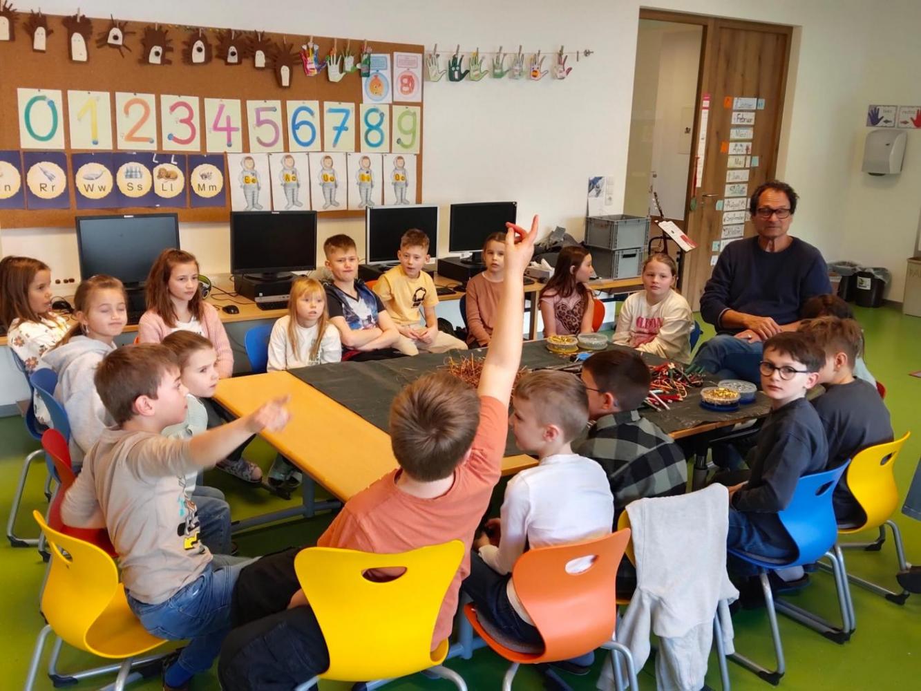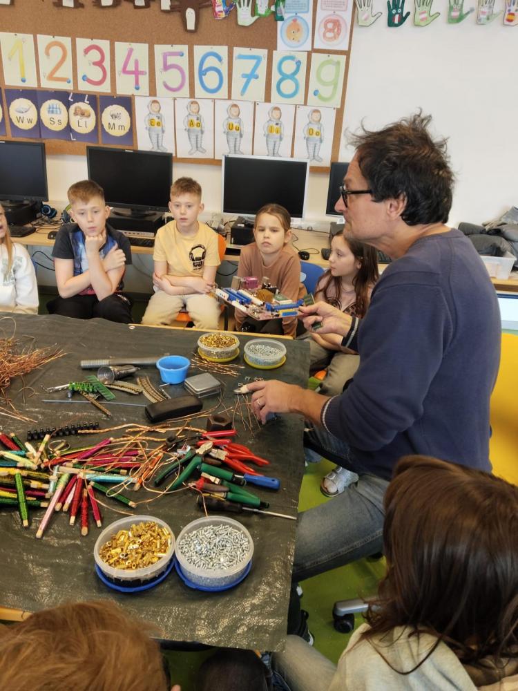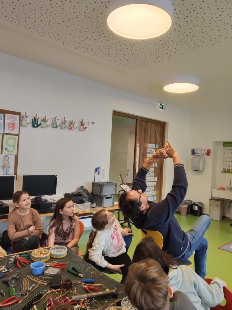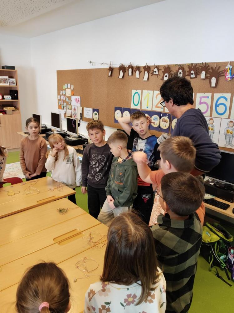 Im Rahmen des Tiroler Kulturservice war Herr Matthias Pflug zu Besuch an unserer Volksschule. In einem spannenden Workshop zum Thema „Metall kreativ" durften die Kinder selbst experimentieren und ihrer Fantasie freien Lauf lassen. Sie lernten verschiedene Metalle kennen, erfuhren Wissenswertes über deren Eigenschaften und arbeiteten mit passendem Werkzeug. Mit viel Begeisterung entstanden dabei kunstvolle Herzen aus Kupferdraht sowie kleine Krebse. Der Workshop bereitete den Kindern große Freude und bot einen besonderen Einblick in kreatives Arbeiten mit Metall.