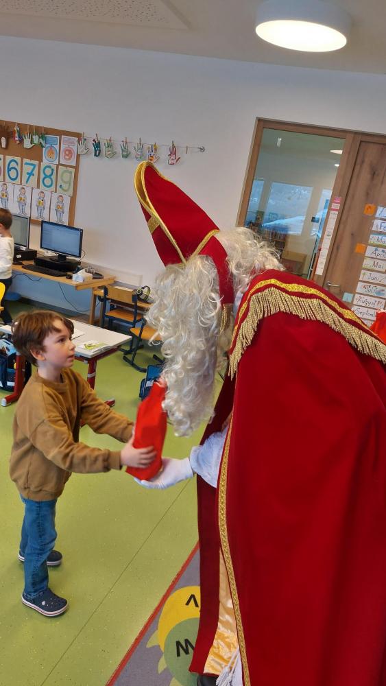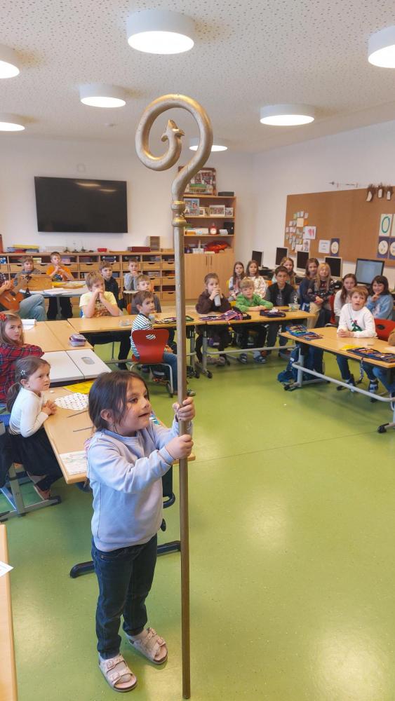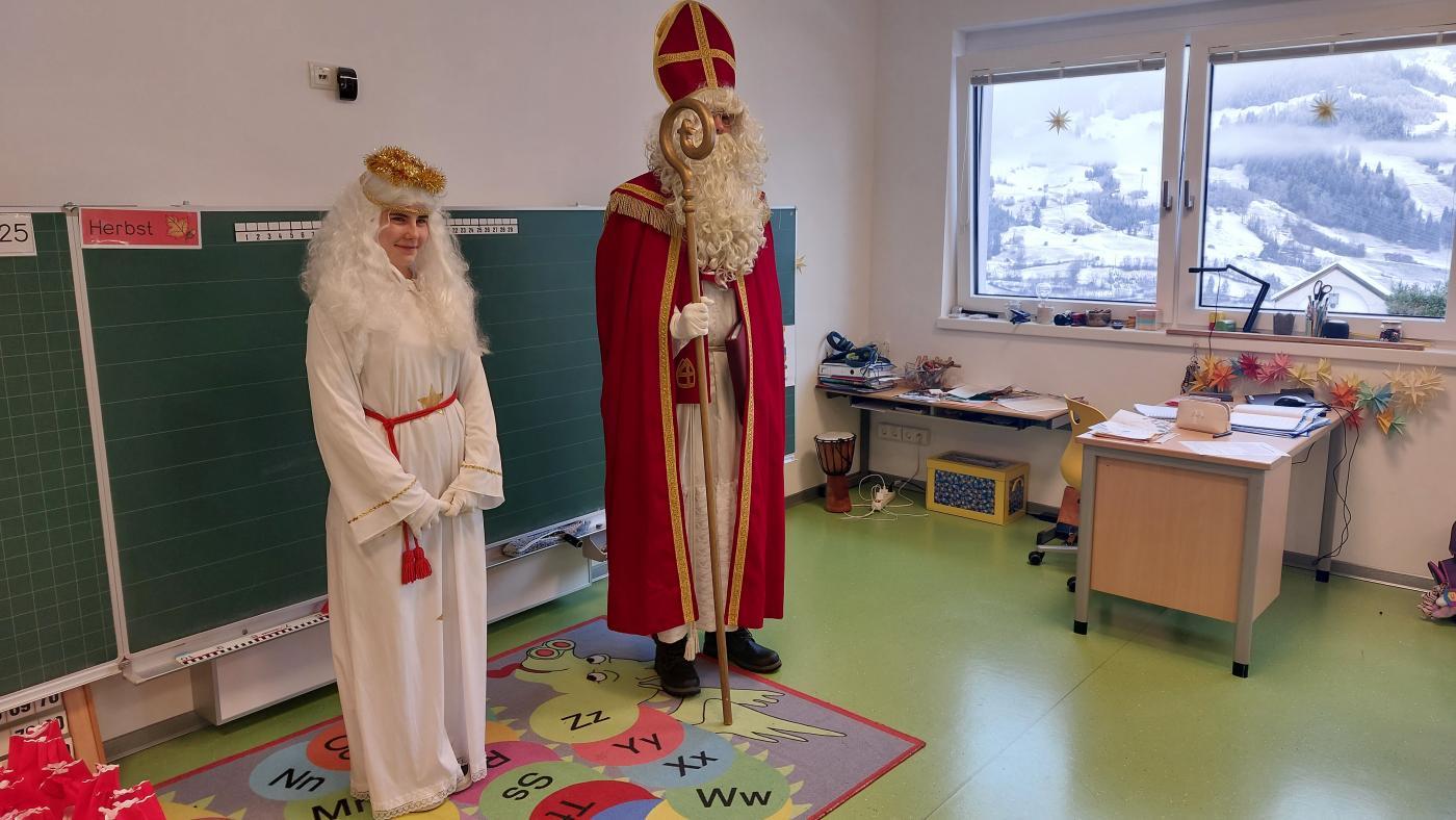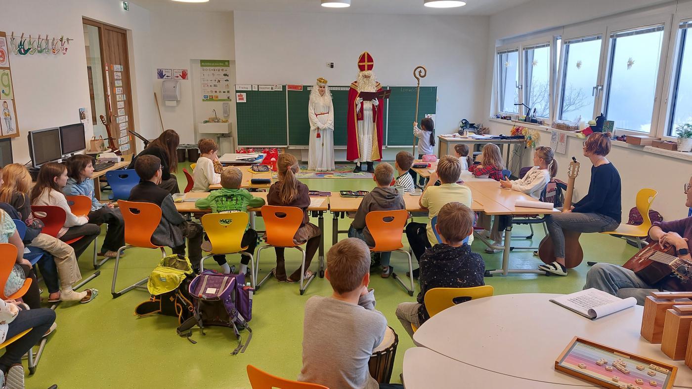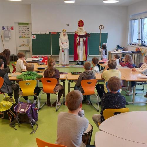 Am 5. Dezember hatten wir besonderen Besuch: Der Nikolaus kam gemeinsam mit seinem Engel in unsere Klasse. Zur Begrüßung sangen wir ein stimmungsvolles Lied, worüber sich die beiden sehr freuten.