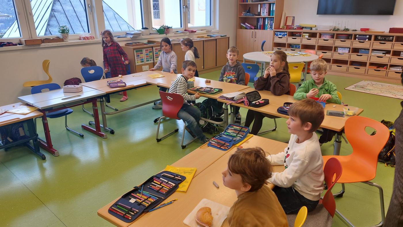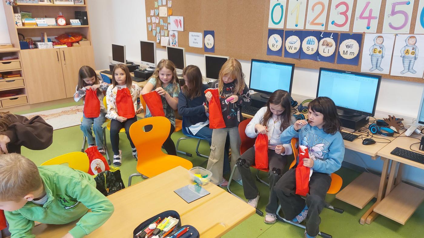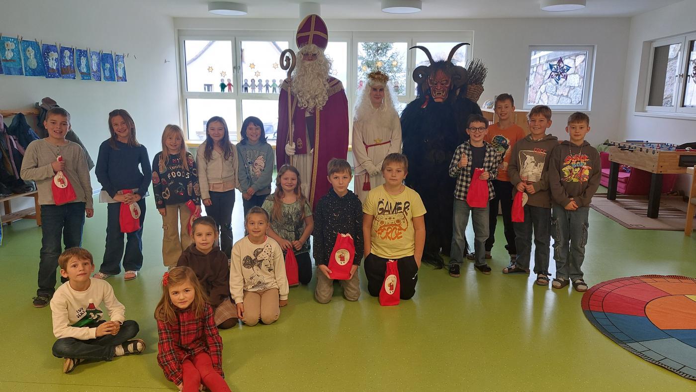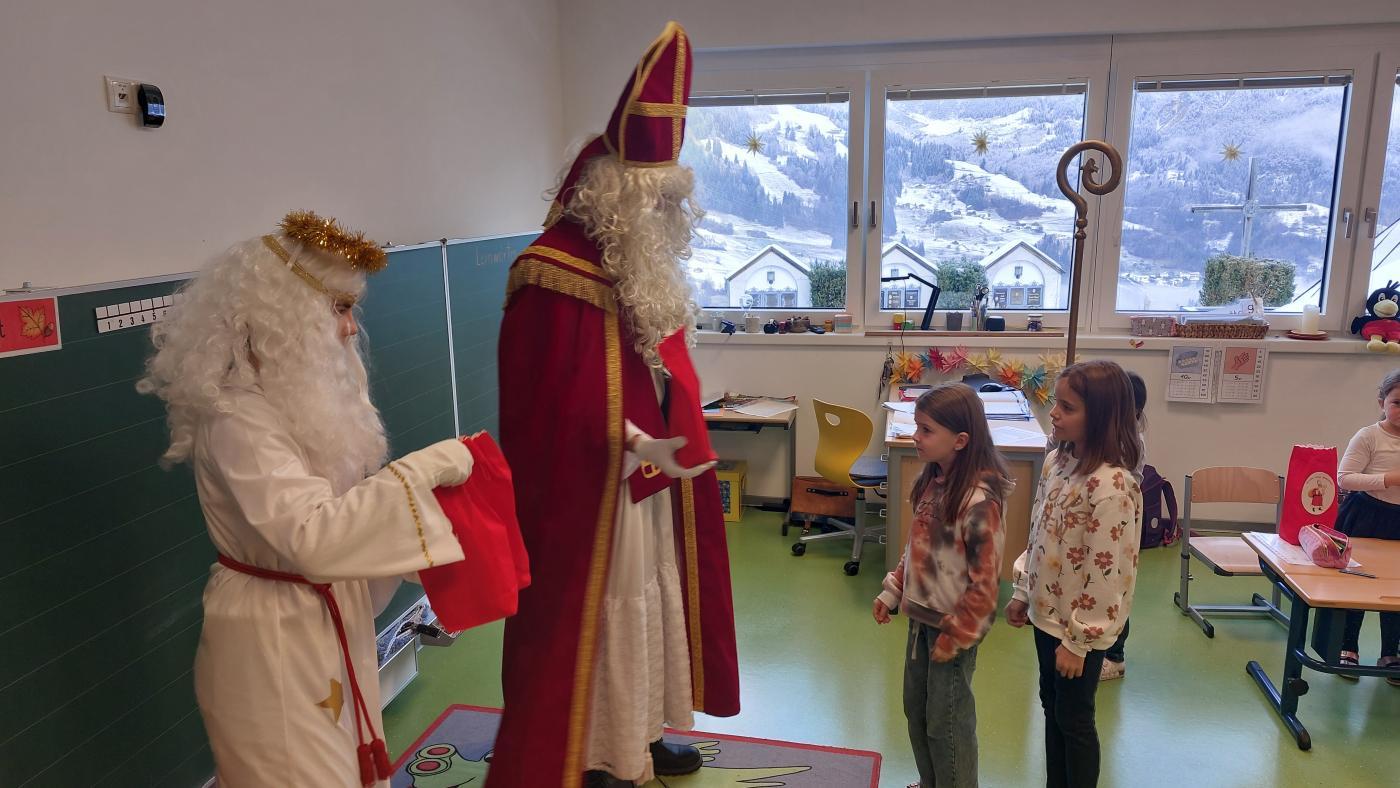 Am 5. Dezember hatten wir besonderen Besuch: Der Nikolaus kam gemeinsam mit seinem Engel in unsere Klasse. Zur Begrüßung sangen wir ein stimmungsvolles Lied, worüber sich die beiden sehr freuten.