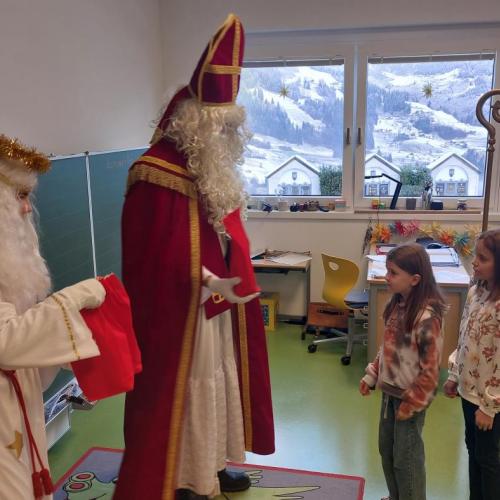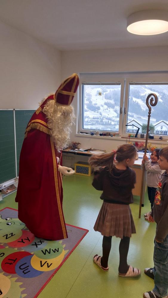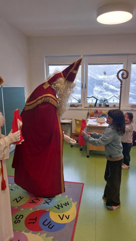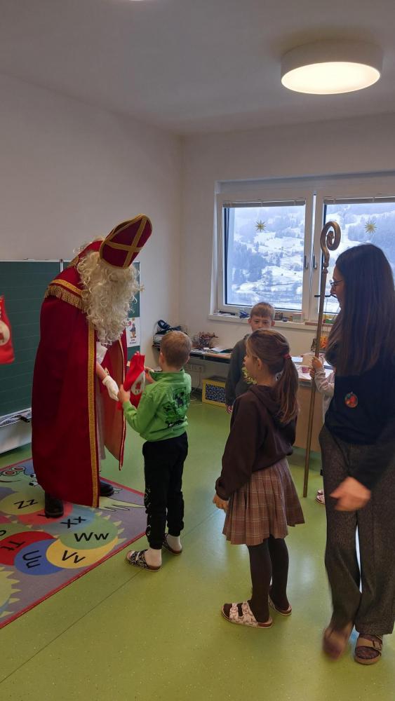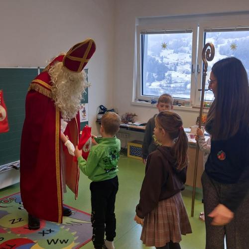 Der Nikolaus erzählte uns von seinen Beobachtungen, lobte die fleißigen Schülerinnen und Schüler und brachte kleine Geschenke mit. Es war ein schöner und aufregender Vormittag. Herzlichen Dank an die Jungbauern von Tobadill!