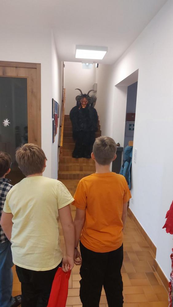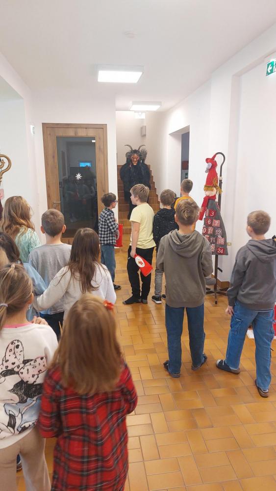 Der Krampus durfte nur vor der Klassentüre warten – sehr zur Erleichterung vieler Kinder.