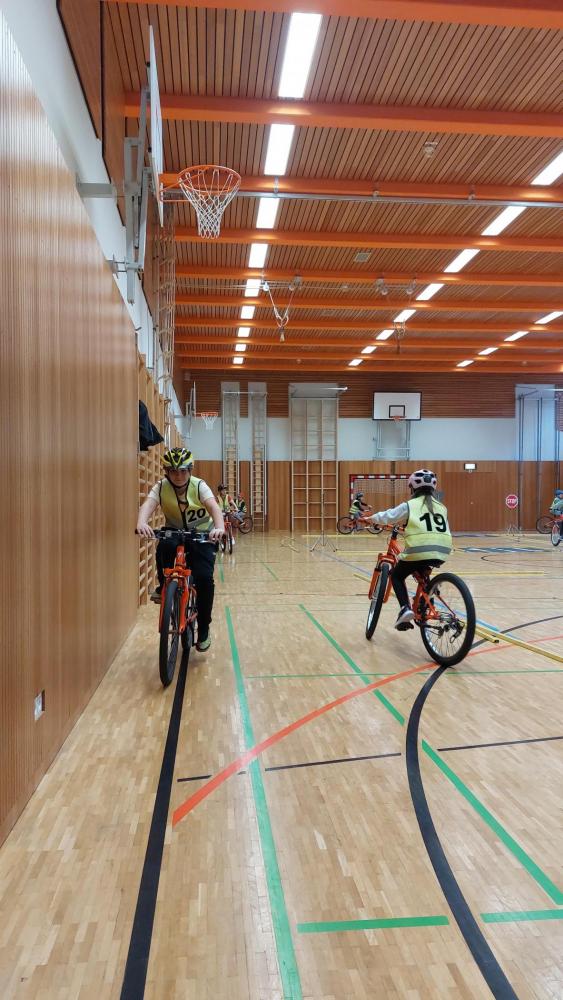 Heute, 3.12.25, fand für unsere Kinder der 4. Stufe das erste Training zur Fahrradprüfung, welche im Mai 2026 durchgeführt werden wird, statt.