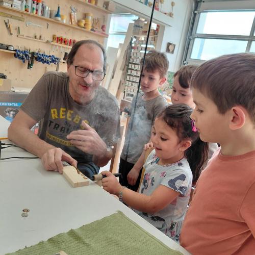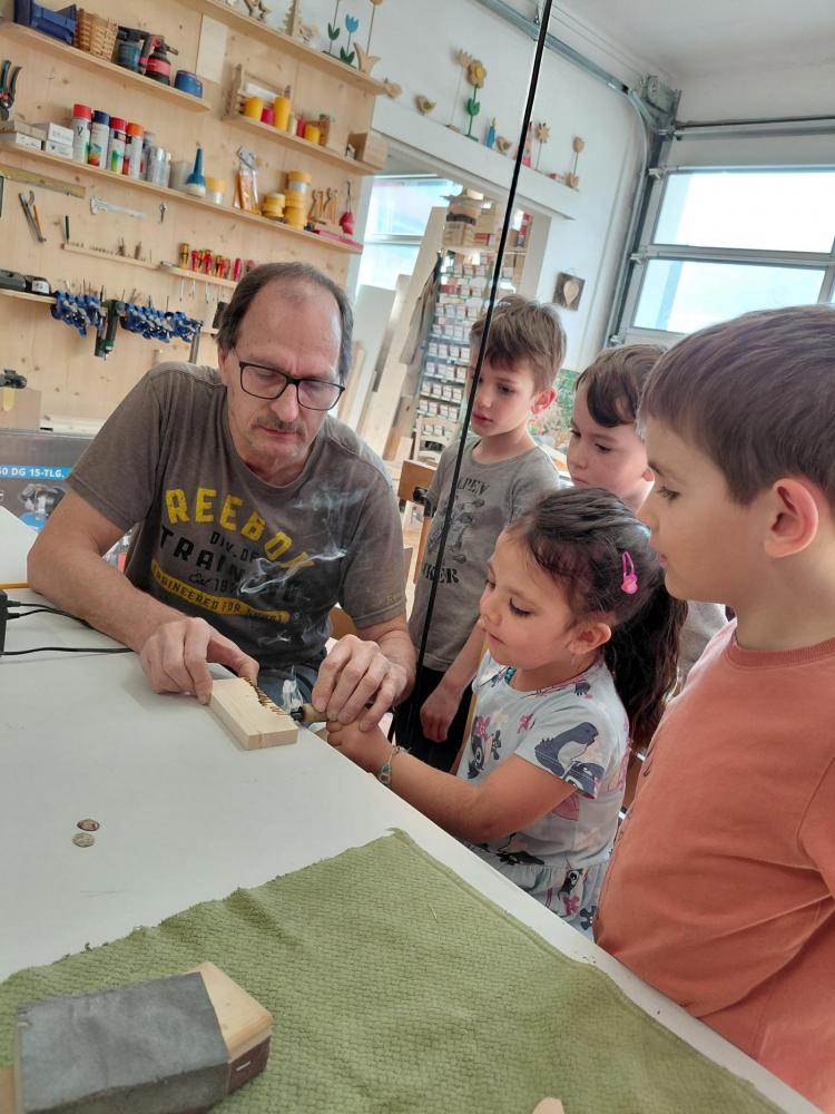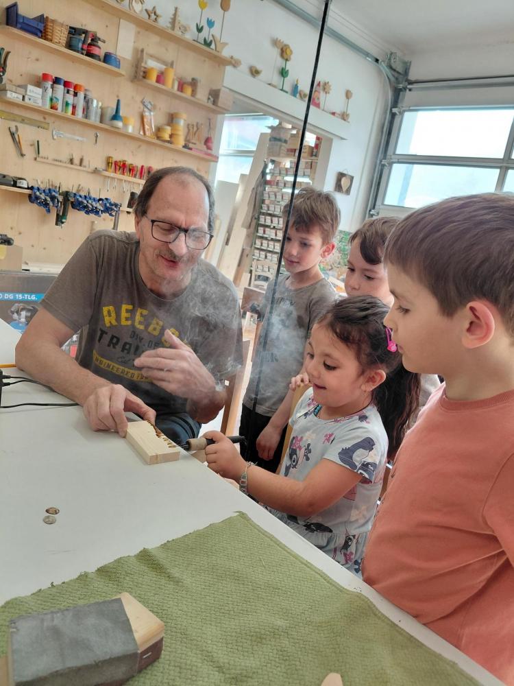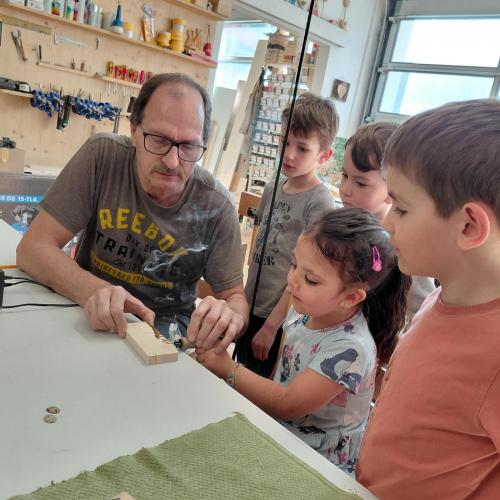 Am 11. März besuchten die Kinder der 1. Stufe gemeinsam mit ihrer Lehrerin Petra die Holzwerkstatt der Lebenshilfe in Bruggen.